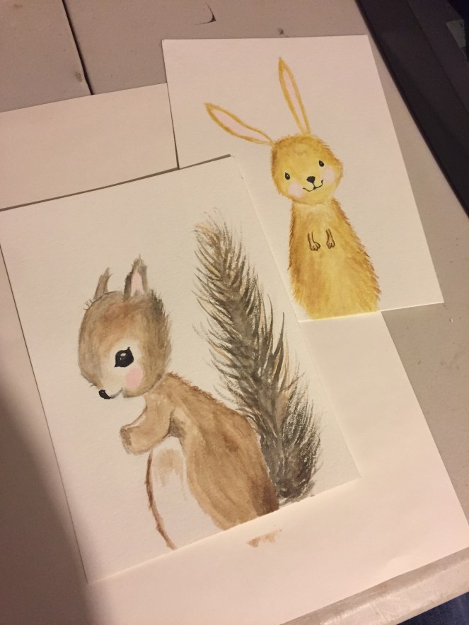 Watercolor pictures for my little niece’s or nephew’s room.π This was my first time doing watercolors, so I was so scared I was going to mess something up!