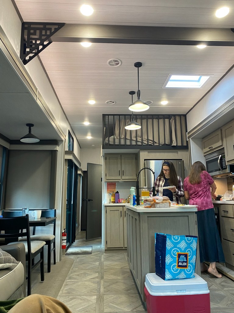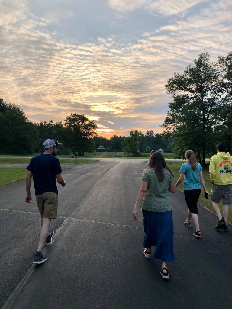 The weather in Wisconsin was a very nice change to what we had down here in the south. 🥵 When we left on our trip, it was in the 90s and humid, but up there it was about ten degrees cooler (and it cooled down a lot at night). It was interesting, because it felt like we did time travel back to our early spring time with the cooler temps, and also with the budding trees and pine pollen. We stayed at a campground, and we were able to take some lovely sunrise and sunset walks. Our friends put us up in a fancy camper, and we were so blessed by their hospitably. This was our first time staying in a camper, which was fun! (Although my youngest sister probably didn’t think it very fun when she went tumbling down the stairs from the top bunk one night when she was sleepwalking. She was okay, other than some bruising.)