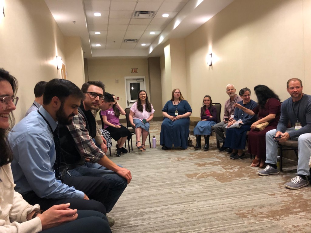 This spring, my brother and sister and I attended the Church and Family Life Conference, which was in the Black Mountain area. It was an amazing time of hearing God’s Word preached, singing hymns along with thousands of other believers, making new friends, mountaintop views, a cappella singings, and a fun, impromptu ice breaker game that I have titled “The Circle Game” (This started with just a few ladies sitting around in a circle, and it grew to about 20 people or so. Someone had the idea to seat everyone in age order, and then we went around the room answering questions like favorite hobbies, favorite Scripture verse, pet peeves, etc.).