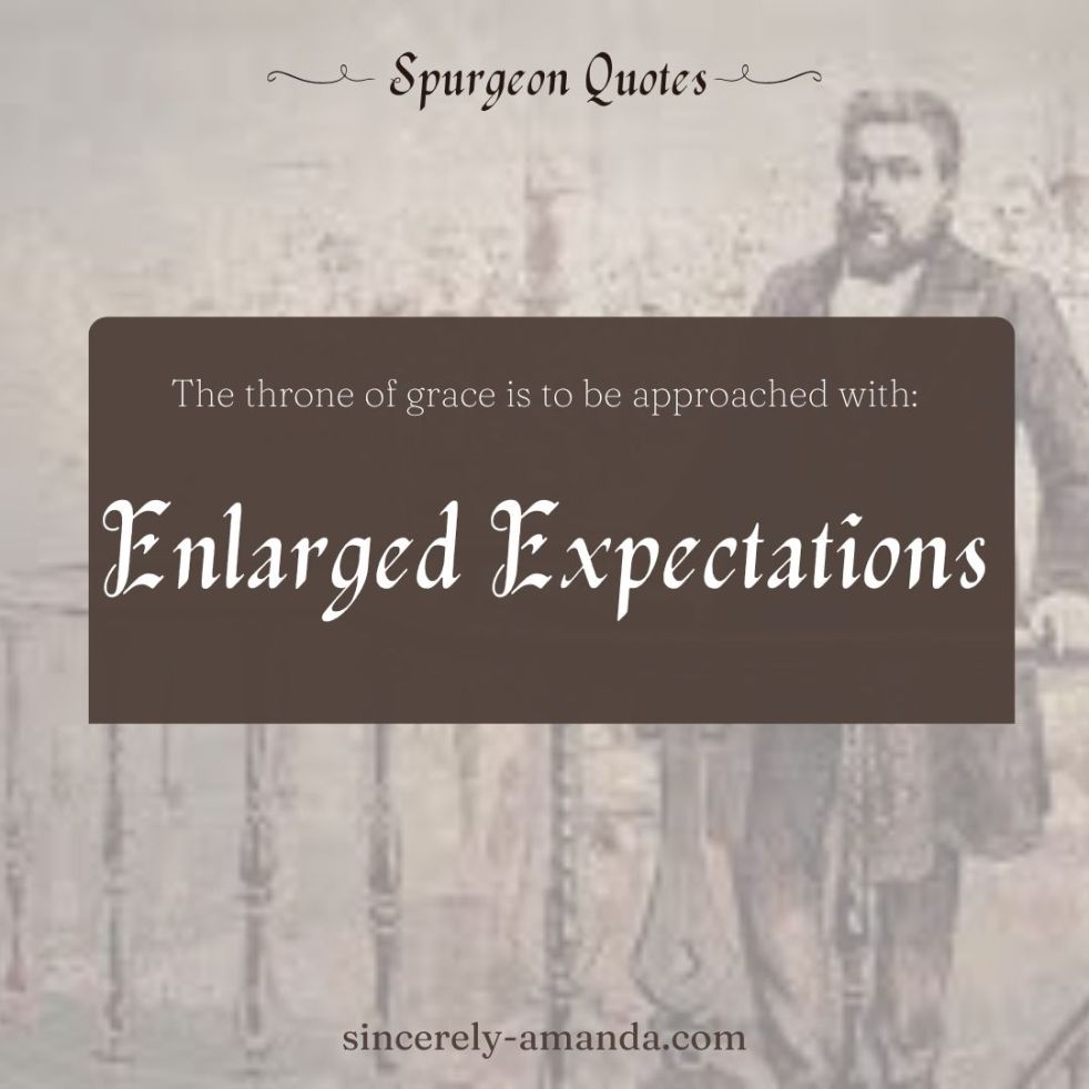 The throne of grace is to be approached with: ~ Enlarged Expectations ~ “If it is a throne, it should be approached with enlarged expectations. We do not come, as it were, in prayer only to where God dispenses His favors to the poor or to the backdoor of the house of mercy to receive… Continue reading Spurgeon Quotes – The Throne of Grace, Part 4