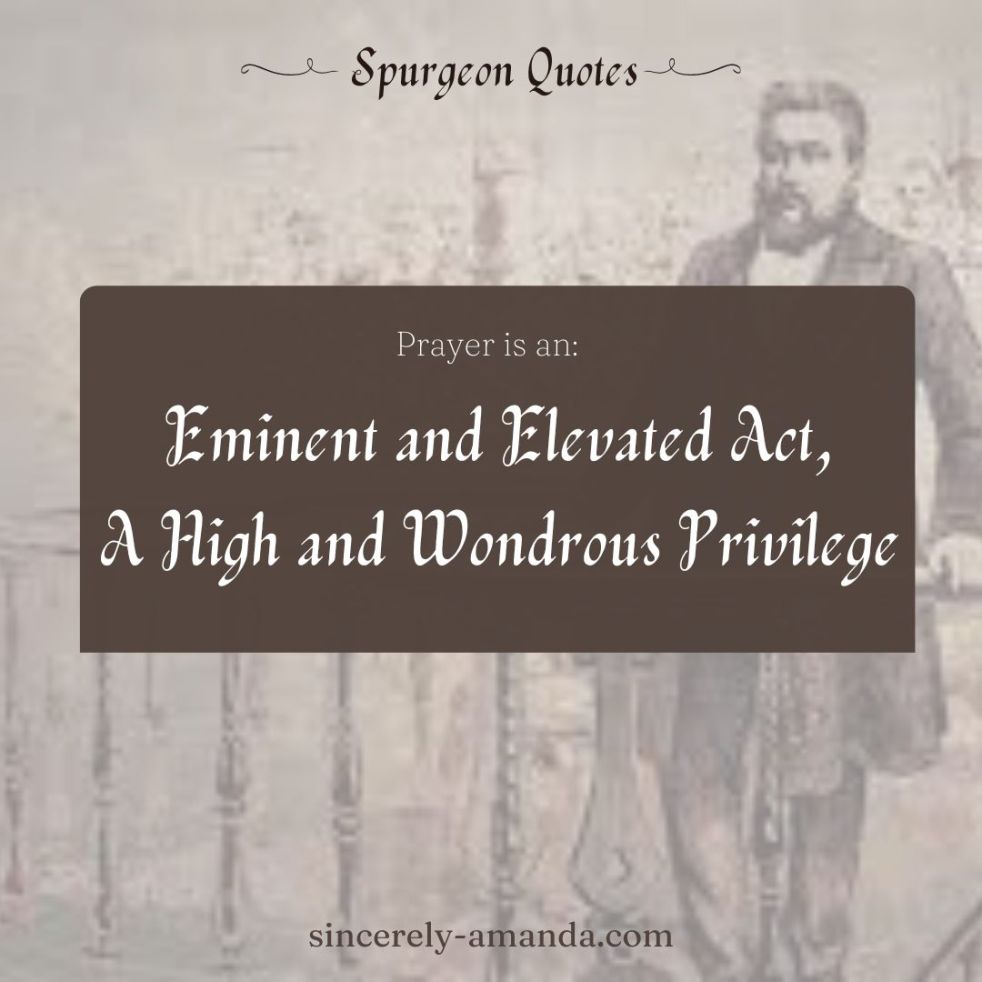 I recently started reading Charles Spurgeon’s “The Power of Prayer In A Believer’s Life”. I haven’t made it out of the first chapter yet, but already it has been packed with so much good stuff!! (I wanted to note that I don’t agree with everything Spurgeon taught, specifically some of his Calvinistic views, but he… Continue reading Spurgeon Quotes – The Throne of Grace, Part 1